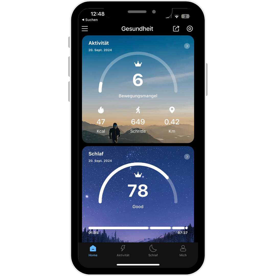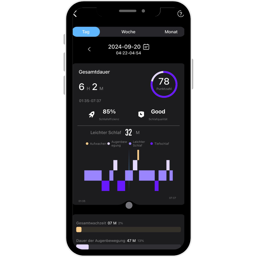 Schlafmusterauswertungen und maßgeschneiderten Ratschlägen unterstützt